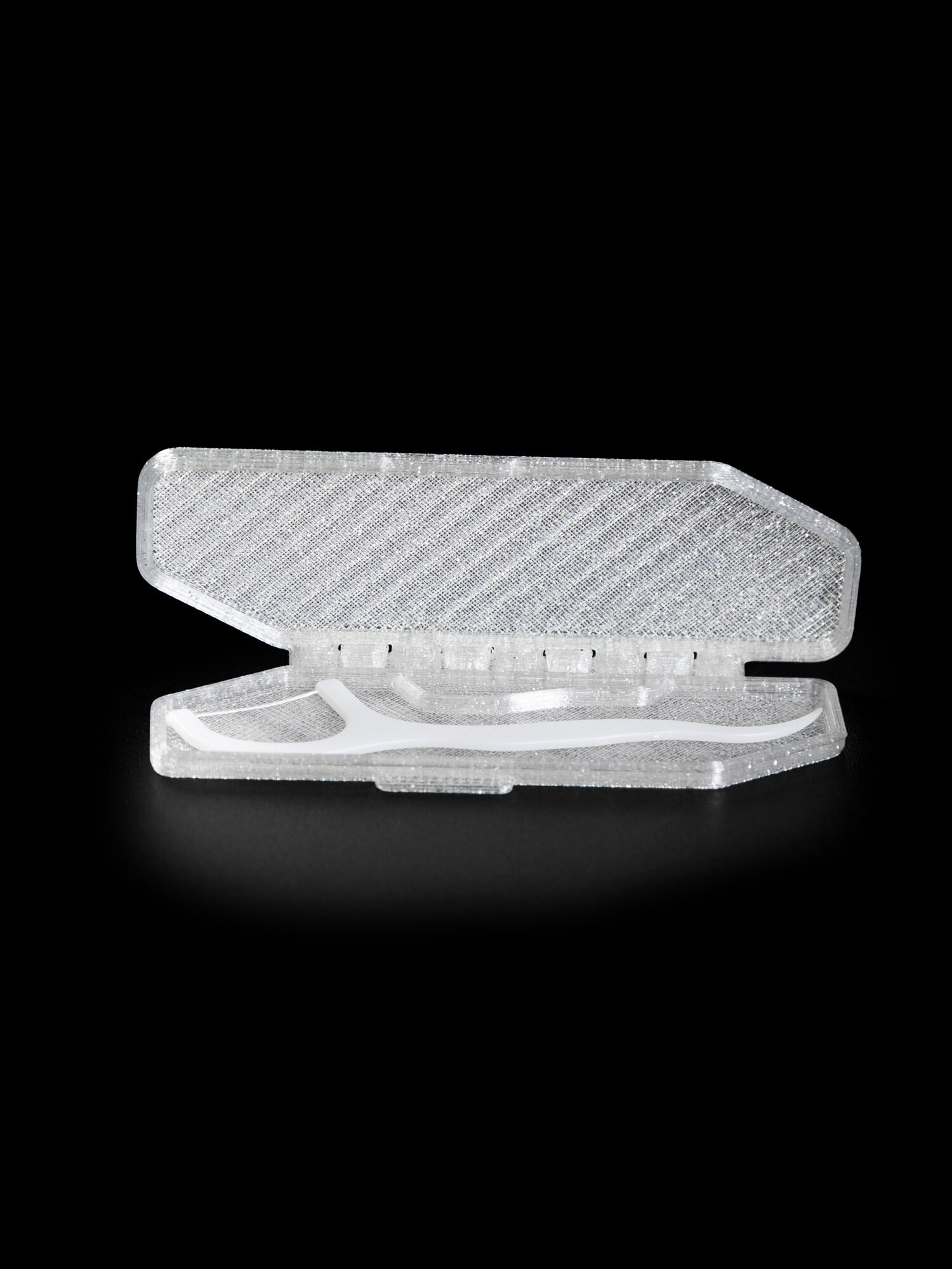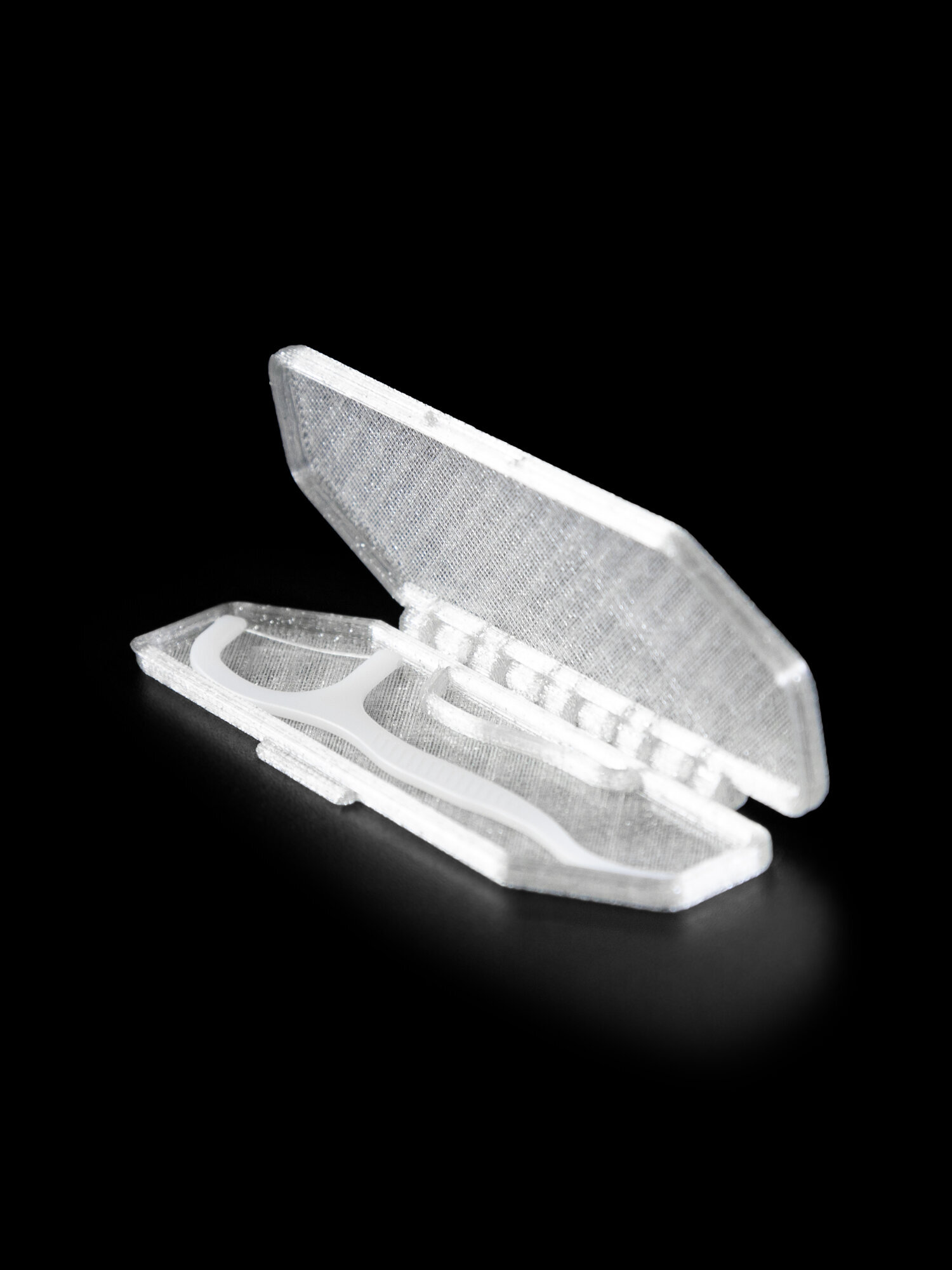 - Футляр для флоссеров напечатан на 3D принтере из экологичного пластика Petg. Не тускнеет со временем, не портится от воды, не имеет посторонних запахов.