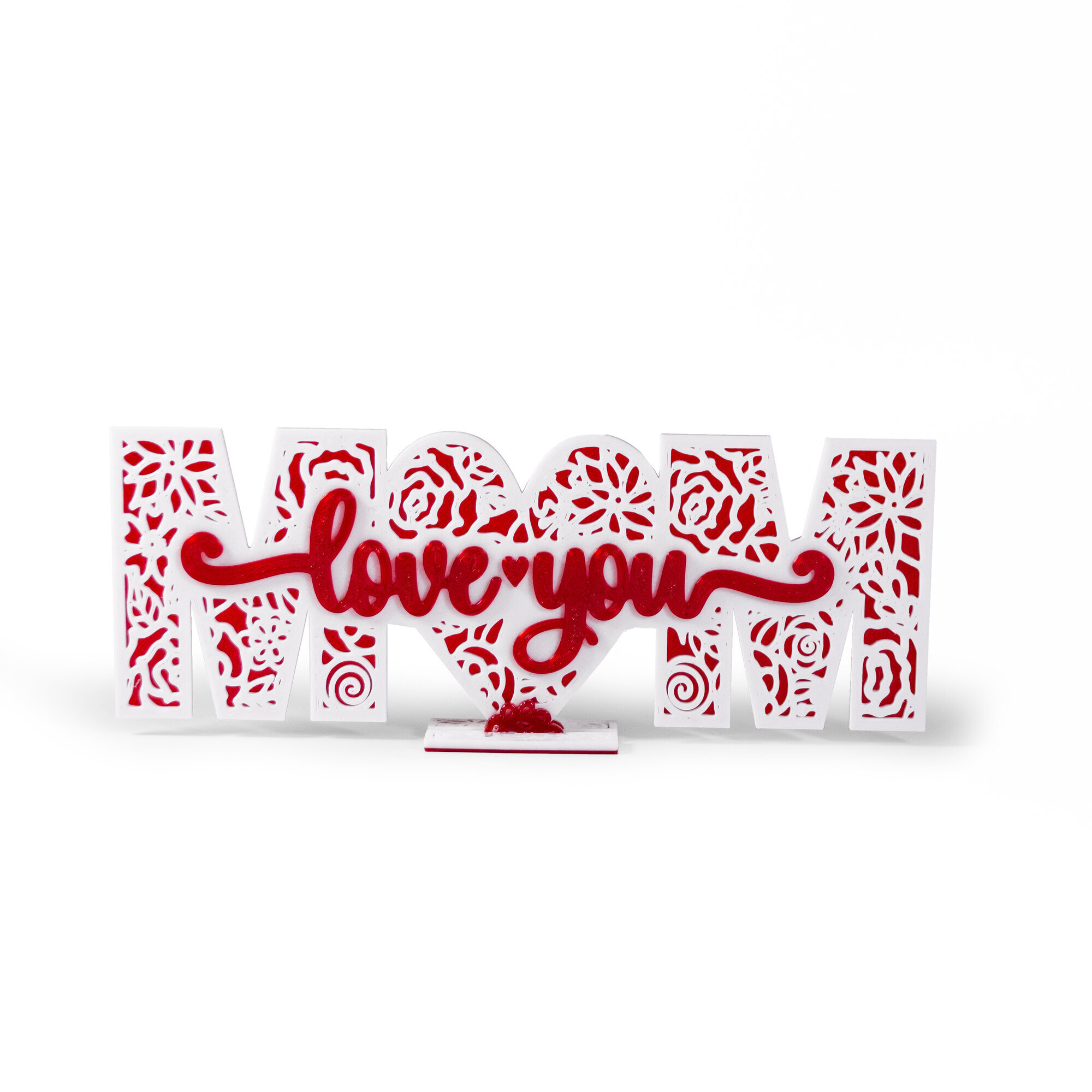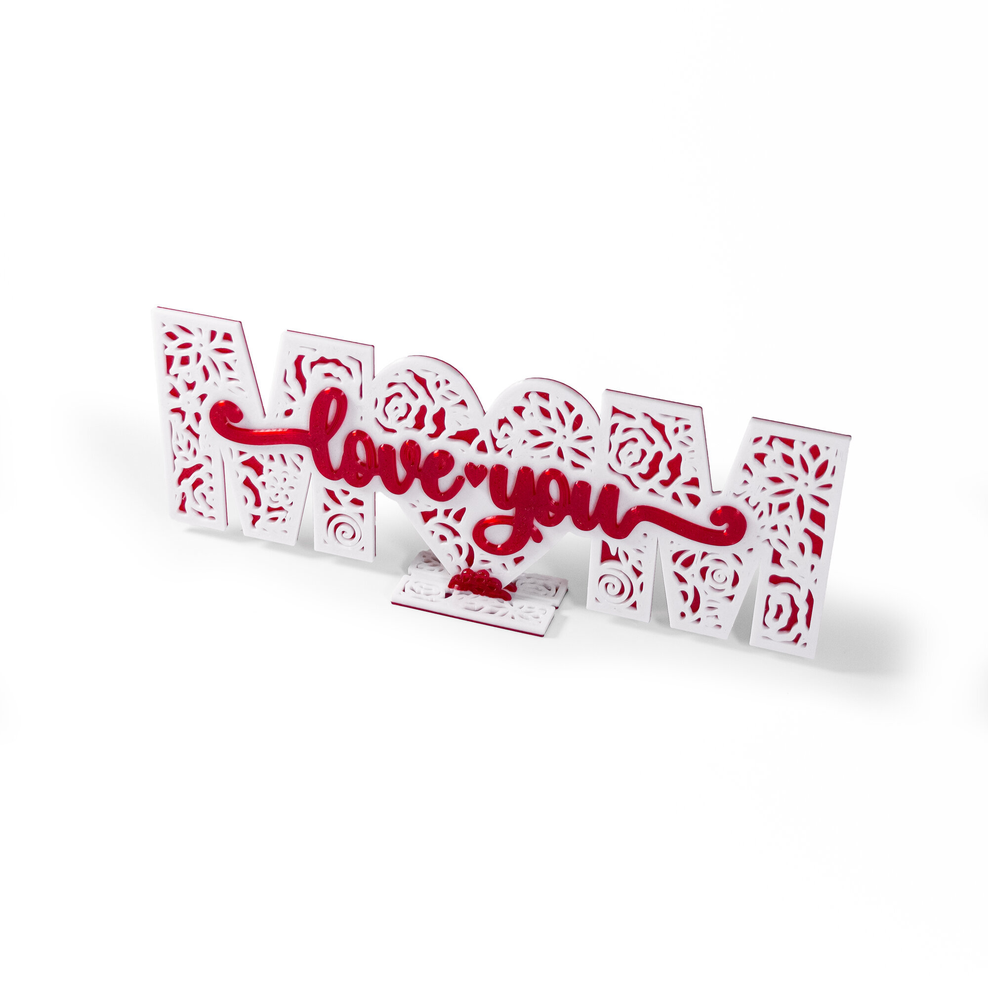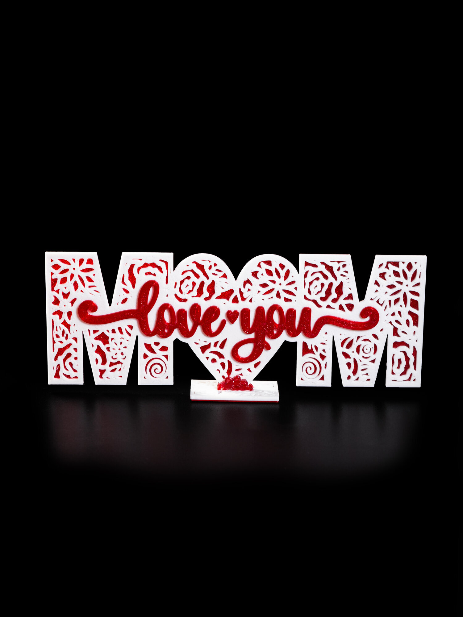 Декоративная табличка с надписью "Love you MOM" на подставке