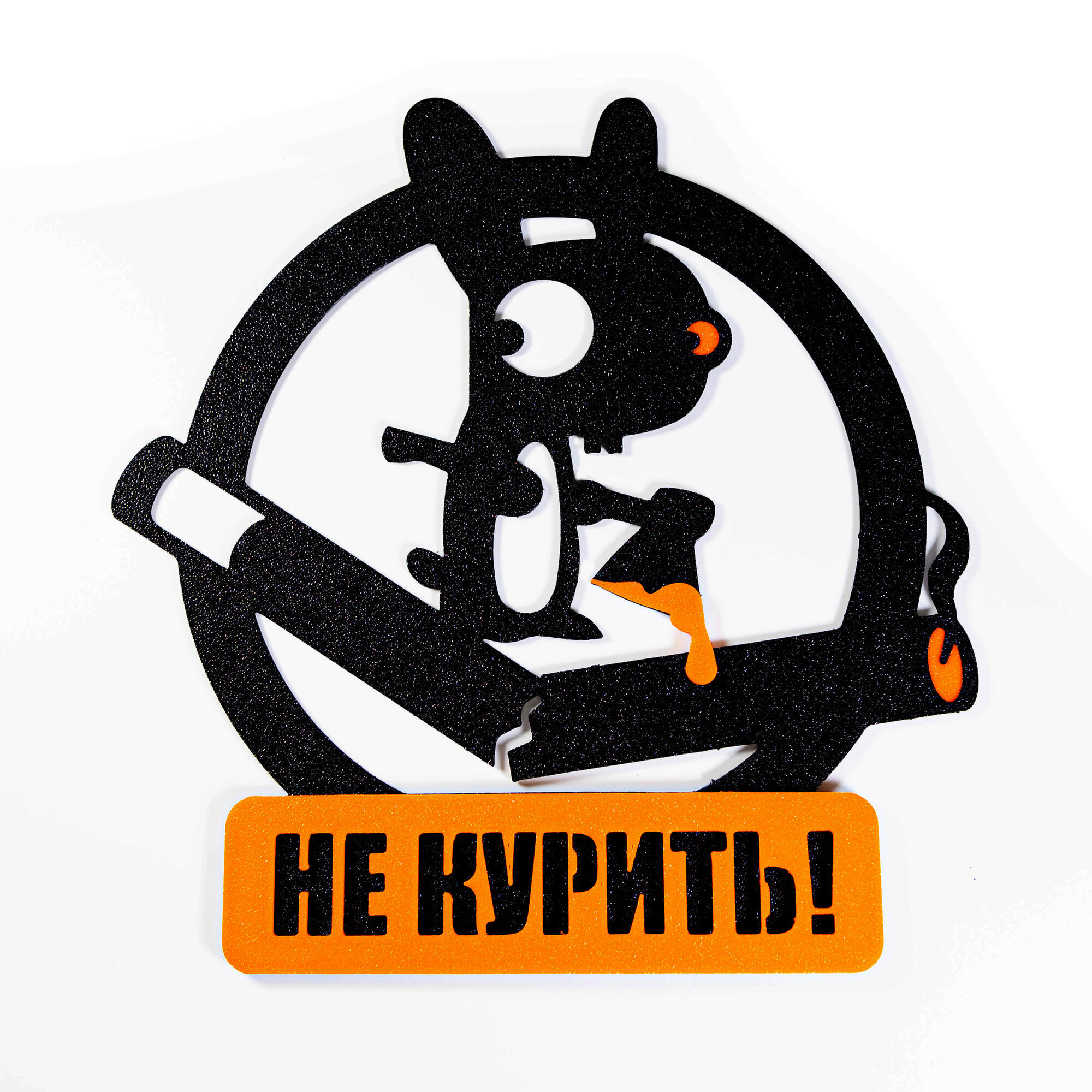 Табличка "Не курить" выполнена в юмористическом стиле и представляет собой нетерпимого к нарушителям порядка зайца с топором. Это не просто табличка, а настоящий арт-объект, который станет ярким акцентом в любом интерьере.