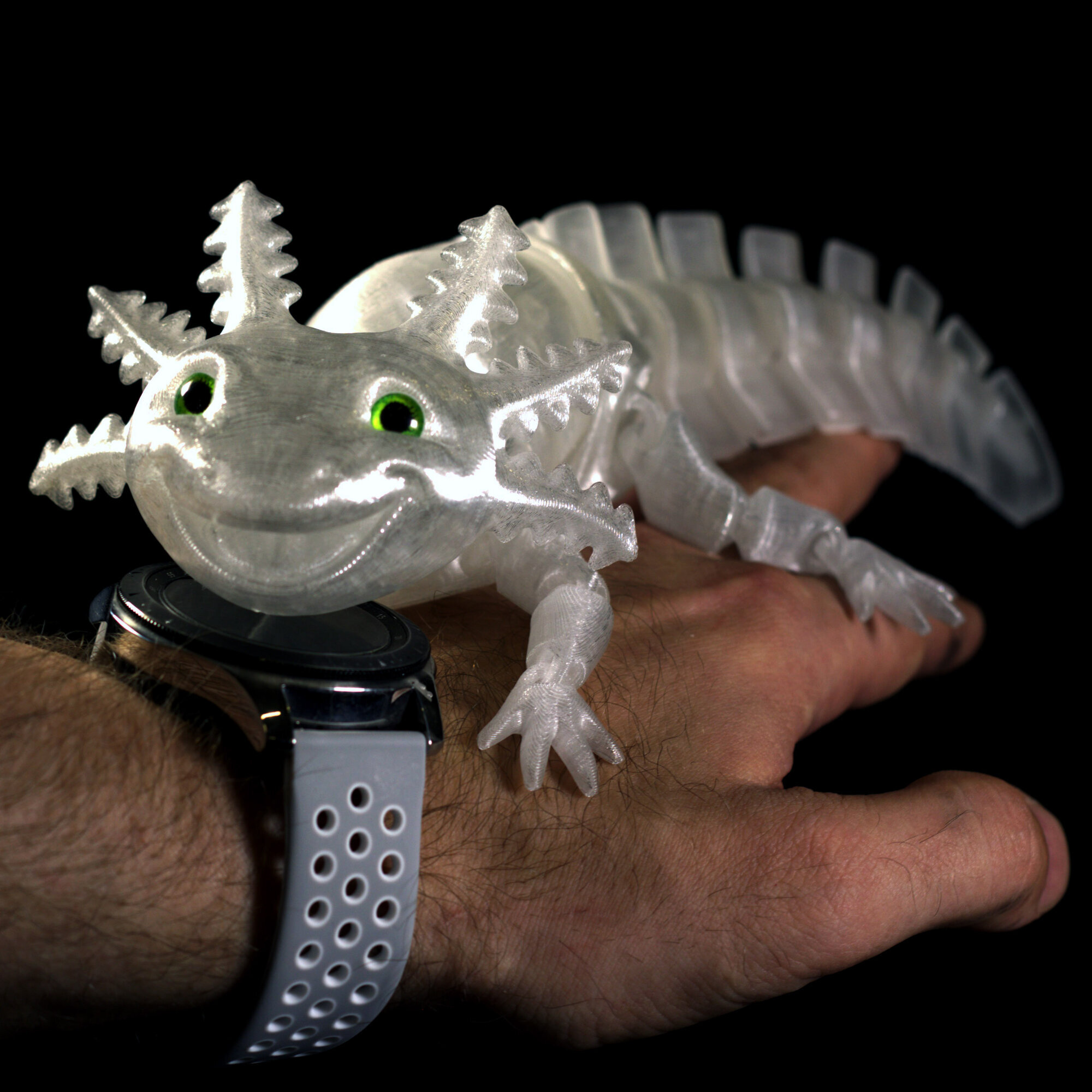 Аксолотль — милое существо, которое очень похоже на Лунтика.Все части тела игрушки аксолотля двигаются. Выполнен на 3D принтере. Материал пластик PETG - экологичный материал для 3D печати. Его делают из кукурузы и сахарного тростника, поэтому он абсолютно безопасен, не имеет посторонних запахов.