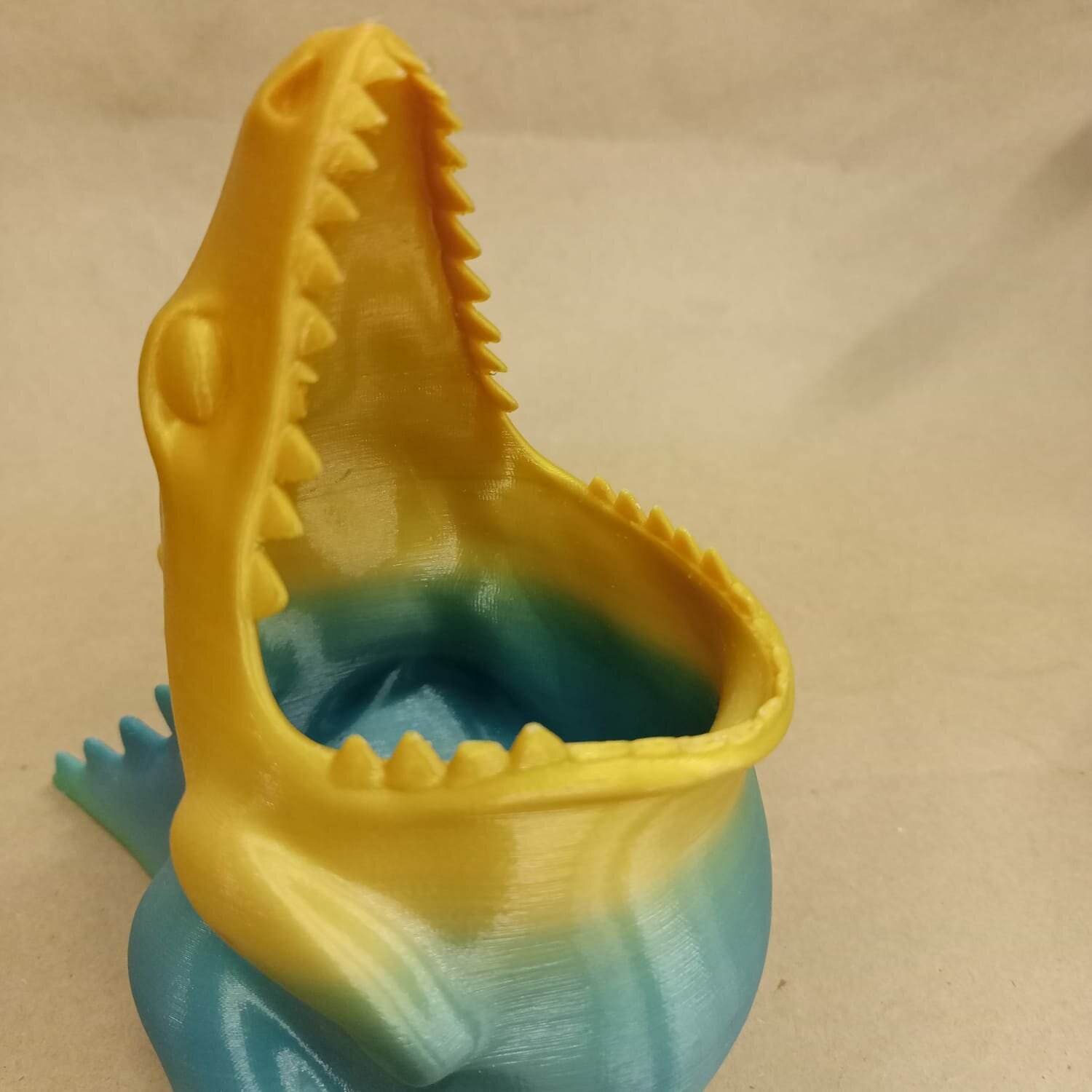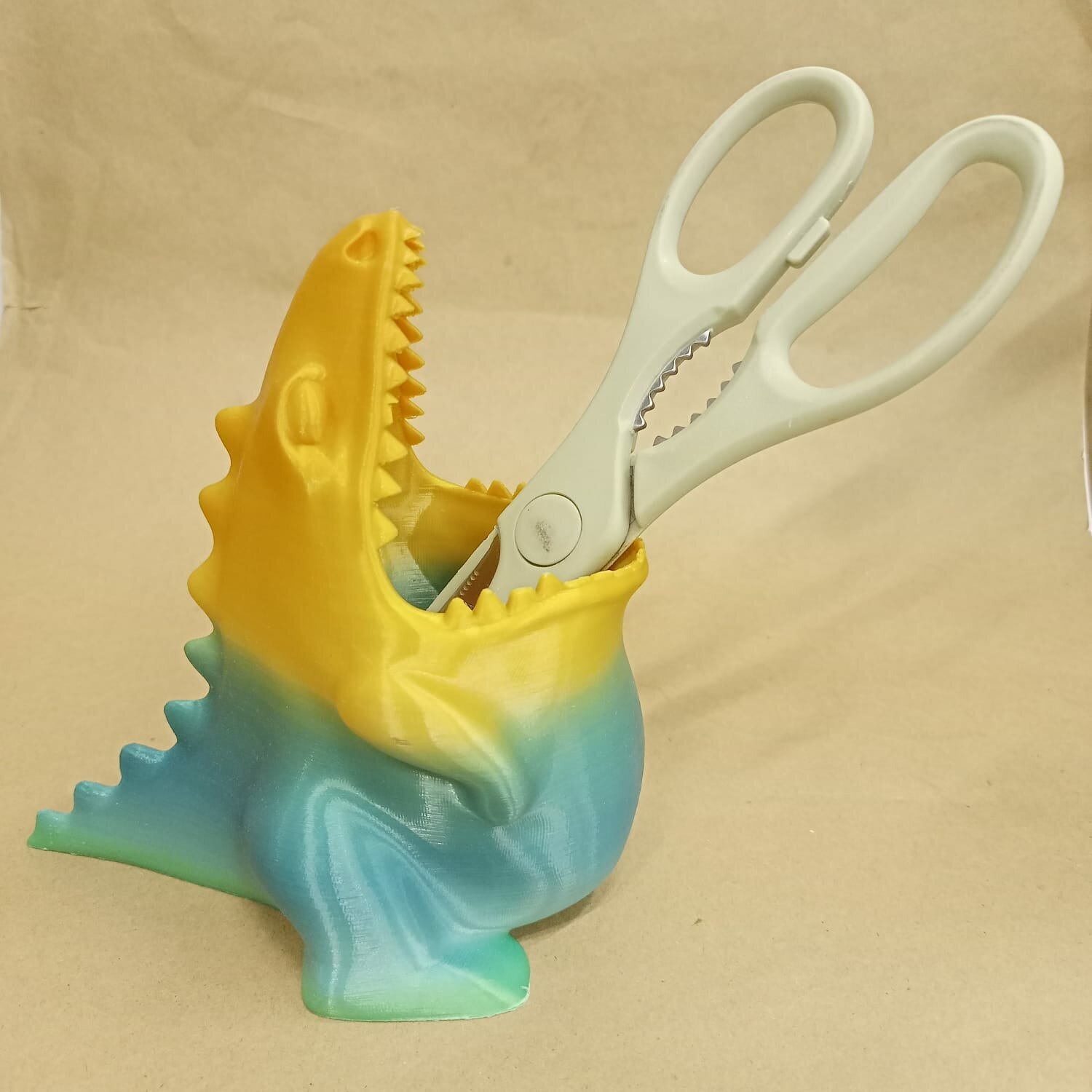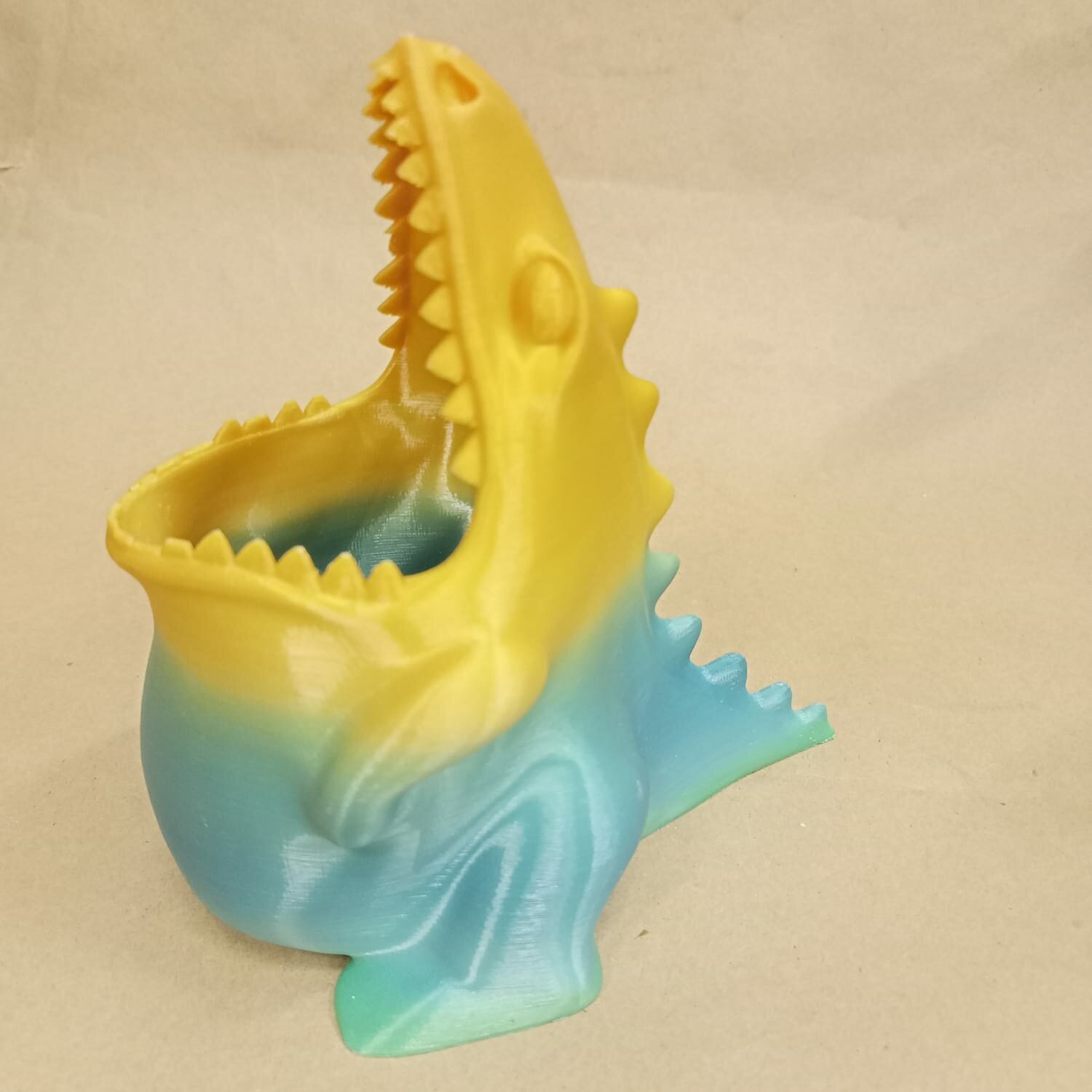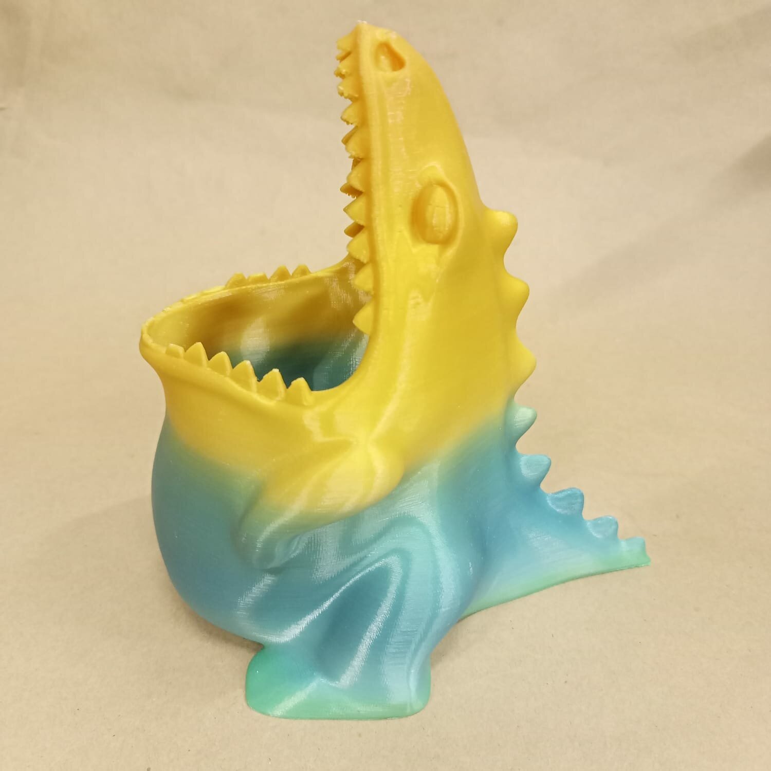 Распечатан на 3d принтере. Материал — экологичный пластик Petg (сделан из кукурузы), совершенно безопасен для здоровья. Подставка для карандашей "Голодный Динозаврик"