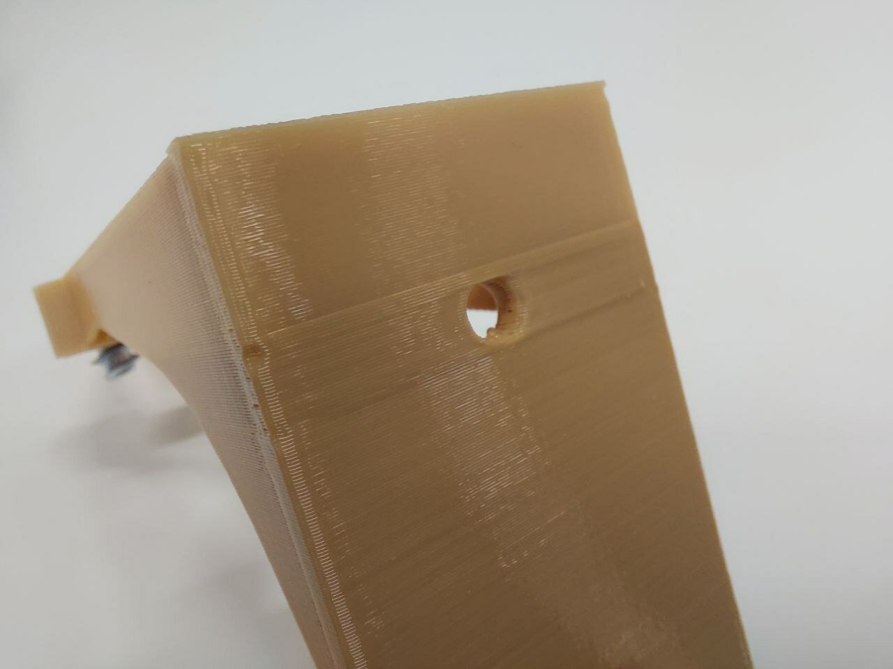 Кронштейн распечатан на 3d принтере из светло-коричневого PLA пластика.