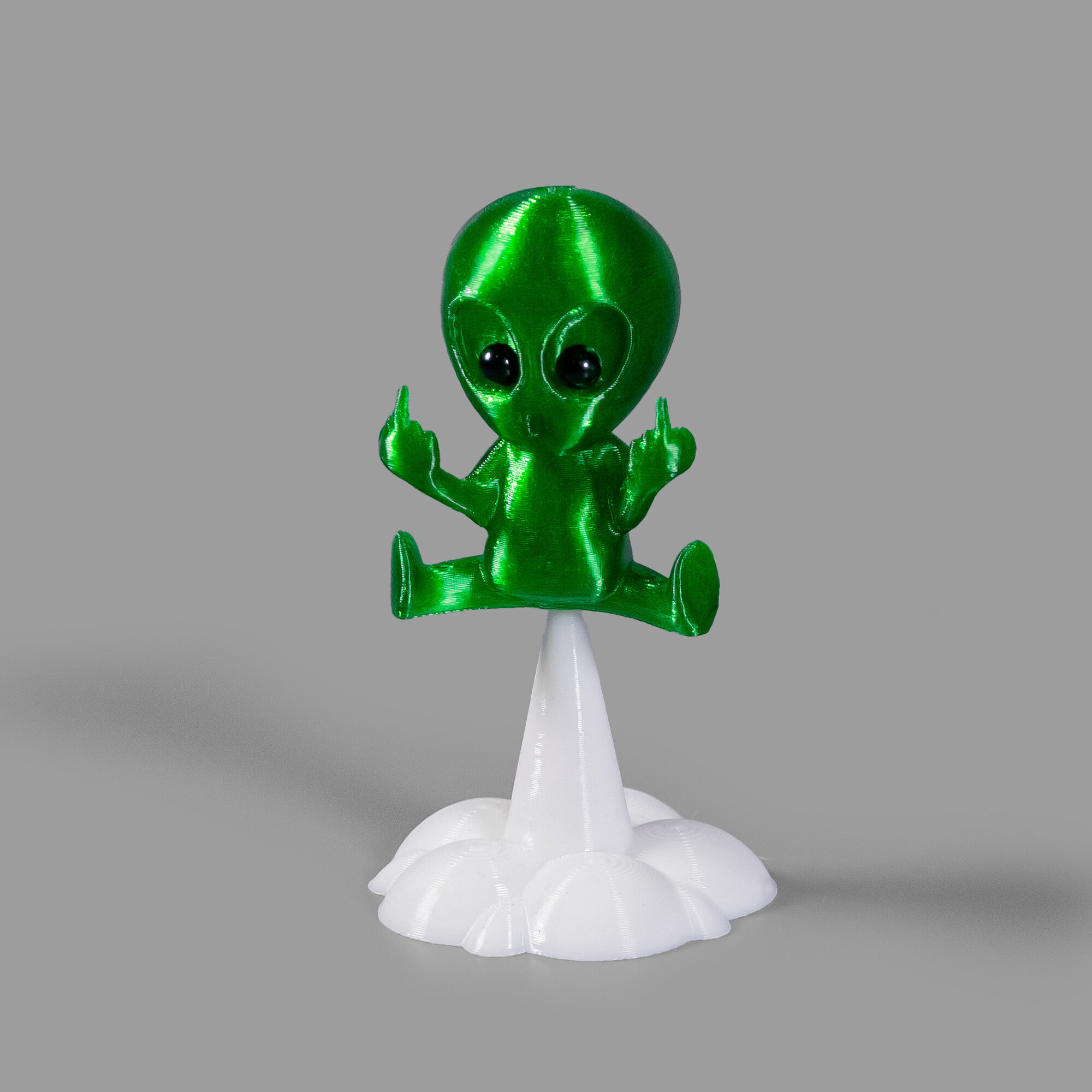 Зеленый человечек на подставке представляет собой забавный сувенир-шутку с непристойными жестами.